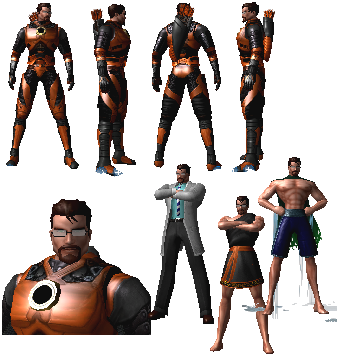 Born in the beautiful and rugged state of Washington in 1979, Gordon had always been scientifically inclined. Even at a very young age, he took things apart and put them back together - better. Usually, that meant taking disparate parts from, say, a toaster, a microwave, and a hair drier to make a mass accellerator. (His hot-wheels cars 'didn't go fast enough' so he made the launcher better.) (That led to his father having to dig out firmly embedded cars from the kitchen wall.) (Multiple times.) The first time that Gordon saw a documentary about teleportation and its applied uses, he was hooked. He had a goal, to work with technology and make it all 'better'. To that end, Gordon applied himself at school and at home. His parents were somewhat concerned that he wasn't going to round out his life with other activities, but he still managed to have a good group of friends, and even a girlfriend or two along the way. He graduated high school several years early, and began attending MIT having been accepted even before that early graduation. His sponsor in that distinguished university was Dr. Isaac Kleiner, a pioneer in the very techology and concepts that he wanted to work with. As a theoretical physicist, Kleiner was unmatched. The eccentric man helped Gordon get a foothold in the program, and was never disappointed by Freeman's performance. Gordon went for his post-doctorate work in Europe, spending time at the Innsbruck institute teaching and researching further. He enjoyed the time he spent digging through the library at that university, as well as the challenge of instruction - though he balked when he got a letter from Armacham-Aperture fishing for his presence at their 'Enrichment Center'. He was happy teaching adults and helping like-minded young people work their way through the complexities of their field, but he knew he wouldn't really want to be instructing a bunch of kids. Even, as they'd put it in their letter, 'Brilliant ones, like you were at their age'. His father had worked with Armacham for many years back home in Seattle, his mother was a history teacher in a high school. But... Gordon was a theoretical physicist, and a damn good one, and he preferred being able to talk to adults by far. Then came a fateful day: he got an empassioned phone call from Kleiner, asking him if he'd like to come work for Black Mesa. Gordon knew that he'd reached the top of the mountain that he'd approached as a child - that first TV documentary he'd seen about teleportation and science was about Black Mesa and their work! Of course he jumped at the chance! So within a few weeks of his acceptance, he was back in the States and learning to adjust to the radically different climate of New Mexico. Of course, it also meant that he had to start back at the low-end of the totem pole, as far as work experience was concerned. His talent and training apparently edged out at least one candidate for their open spot, who he later learned had taken that offer at the Enrichment Center. Within days of his arrival and the processes for his security clearance finished up, Gordon met Barney Calhoun - a security guard a few years younger than himself, and for whatever reason, they absolutely clicked. Whether it was playing darts and drinking in the dormitory pub, or enjoying paintball at the outdoor arena in the neighboring township, theirs was a solid frienship from the start. Thus when the Resonance Cascade occurred, Barney was justly worried sick for his friend's safety - he was at ground zero, after all. But then, so had Barney been, along with a number of others who managed to survive. But for 12 years, no one knew what had happened to the bearded, quiet, brilliant scientist. It turned out: nothing had happened. He'd been in stasis for all that time, after having fought through Black Mesa's crumbling and danger-filled interior, and moved through the Lambda teleporter to the odd world of Xen. He'd freed the Vortigaunts from their captor Nihilanth, he'd managed to do things that no Human ever had. And it was no Human that observed him for those 12 years, it was Nach'lih Kallah-vahh. Gordon's abrupt reappearance into the post-events world was hardly prefaced, but well timed. And even in the time he spent 'waking up', he learned more about his own existence and purpose than he'd realized could be possible. He learned, for instance, that his genetic makeup, while not actively Vortal, was so close in all ways that he could provide a genetic 'battery' for any other Vortal genes. In one moment, he became the most valuable Human being alive after the broad sterilization process that effectively killed Humanity's future. Of all the Humans that Keenan Lane associated himself with, he feels that Gordon Freeman is perhaps among the very few who can actually comprehend the vast 'bigger picture' of what he'd been doing. True, when Gordon began thinking on the events that he participated in and what was to come, he often began muttering to himself or trying to find too many knots of ideas to unravel. But in the end, he aided the efforts to destroy Ulathoi once and for all, and did it with style. Gordon went with a small group of others to Europe - ostensibly to rescue a friend of his new companions who had somehow gotten lost in the shuffle. He could understand the desire to reunite with old friends... And knew that he'd never be reunited with some of his own - they'd all been killed or lost in the years of his absence. And, partially, it had been his fault that they'd been lost. But convincing him that he wasn't to blame was never hard, and Gordon enjoyed returning to the areas he'd haunted while working at Innsbruck. (Of course, seeing the state of things there broke his heart, he literally wept for the loss.) His role as a scientist was never the only reason people enjoyed having him on hand. He and Chell hit it off as well, and between the two of them and Alyx Vance managed to recreate a good number of important telepor