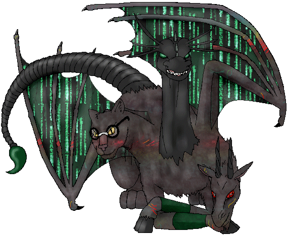 Meanwhile, out back, as long as Bhavaiyath let her, Sara Letha Katrina hung out and talked at him for hours. My god, could she talk. Like me, I suppose... But she also had several email accounts and forum presence on places I habited myself, so it got kind of confusing when people figured out we had the same IP address and name, but were clearly not the same person. One such moment of confusion led to a particularly weird encounter. I hadn't thought there were dragons here, in this world where I'd settled. But perhaps like the other places I'd invented, there was much more to it than I originally thought. I didn't design it to have them, but there they were. Maybe on their way from other planets or universes, but either way there was one guy on a forum who just wouldn't shut up. He was so angry all the time. SLK and I would type replies quickly in his threads, asking him to back up his reasoning and to show examples of why every single thing involved with ... well, whatever, because he was everywhere, was gloom and doom for the whole Intarweb. He never did, of course. He just came back with yet another thread slightly mis-spelled, about the current doomcon of the forum. And at one point, SLK and I talked (through the back window and my laptop balanced on the windowsill) about what this guy had wrong with him and what we'd do if we could just talk to him face to face. Well it turned out he 'heard' us. He was a dragon after all. And somehow, they just know. And especially if you're a forum troll, you just know when people are talking about you behind your back. Well - even when people aren't, they think so. He showed up in the back yard one morning, yawning and growling because he hadn't had any coffee yet, but chatting it up with Sara while Letha tried sleeping and Katrina was looking up at me with those angry green eyes of hers. Sara called up to me, "Can we keep him? He's got a wireless!" I tapped my fingers on the doorframe, and shrugged. "Do we have a choice?" Bhav muttered into my mind, obviously not, he's already moved his stuff into the back end of the yard. "Well then, ... um, I'd say welcome but not really. Have fun. Don't break anything. And I swear if you try eating any of the cats I'll kill you myself." I sternly warned him, but he didn't really care. Forum troll or no, when faced with actual true doom - it was easily ignored. Maybe he cried wolf to himself one too many times, eh?