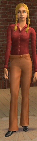 Skin: lightly tanned, Hair: dishwater brown, Hairstyle: loosely curled, cut to the neck, Eyes: light blue