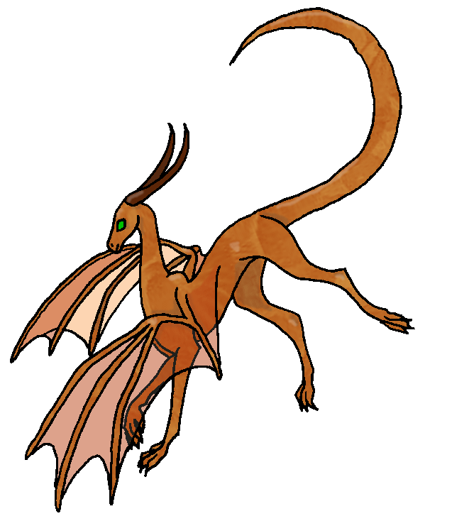 Autumnburn was enjoying a long nap by the waterfall, when she heard a rustling in the bushes. Her senses told her to be alert but not to panic. There was something familiar about this scent and the noises that the creature was making. She tensed up but then saw a brown snout poke out from the golden foliage. It made her giggle, and when the snout sneezed she laughed loudly. "Well that's a fine welcome," the dragon muttered. "I am here, for you, do you like me?" He strutted out, showing off transparent wingsails and a long tail. Autumnburn sat silently for a moment and then realized what he'd said. "I... I do like you! I've gotta show you to the rest of the Holt!" Fortunately for Taeng he could easily keep up with the excited elf. He wasn't sure whether he could manuver easily in the branches of the trees that framed their small lakeside homes, but once they exited the shelter of those nearly bare branches, Taeng spread his wings and took off above. "Look at him!" Called out Autumnburn, "his name is Taeng! He's here for me!" Elves and dragons alike poked their own heads from their homes and out from dens, and the dragons began to bugle and cheer. This one was tiny compared to most, in fact he was just about the size of the Lian dragons that lived here. But his attitude was fit for a much larger dragon - though he was not rude, he certainly was confident!