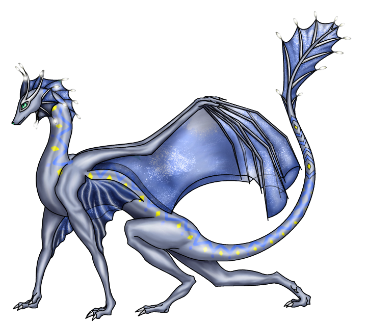 Kid arrived with Chamomile happily near by, to Akelara's busy hatching area. He'd remained a little shy among all the other people - humans, other ... things... All a little much for him. But all was forgotten in a moment, because Chamomile was addressing her own little friend, and... Meanwhile, next to her, Kid found himself circled by a silver dragon with star-studded wings, a sure sign the hatchling was from Raindraught's clutch. ::I'm Fienn!:: The hatchling giggled, after he had completely encircled Kid. ::No one'll mess with you with me around!:: Kid warmly snuggled with the long dragonet, it was almost as tall as he, in length! That would change, of course - all these dragons would be quite long and very dramatic. The markings on this one were stunning, Kid was very proud. Speechless, really.