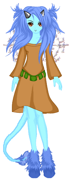 Name: Nilasardi (blue winter) Gender: Female Species: Ice Elemental (Holic) Size: 4'9" shoulder four footed, 5'7" shifted (dollwizard modified by me) Abilities: Ice elemental, metal elemental, air elemental, single-shape shifting (to elfin-mix), telepathy |
