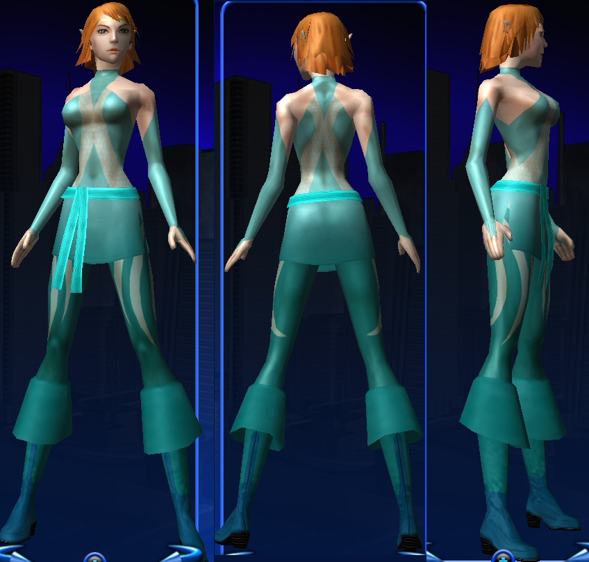 Clothing -- Summer: silk and cloth bodysuit/mesh, cloth skirt, and leather boots