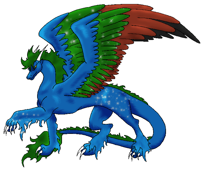 | Name: Daeoreon Gender: Male Species: Kilamdiry Color: Lapis Lazuli (Rare) Height: 8' at shoulder Abilities: Stealth Magic, Telepathy, Teleportation, Paralyzing Breath Personality: Extremely friendly and outgoing. Finds it easy to trust others. |