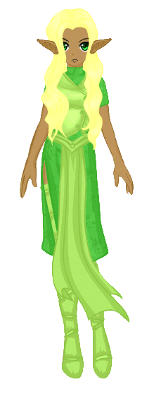 Basic Personality: a bit arrogant, but she definitely keeps herself in check when there are people around. she is disgusted and concerned with the half-blooded elves that have come about, though she knows they're still elves she feels sorry for them that they're doomed to live a mortal life (no matter how long). She's excessively spiritual.