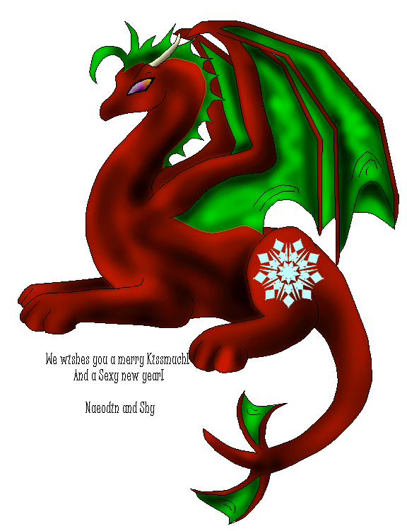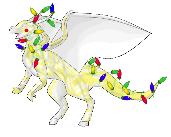 "It happened again, didn't it?" Baeris asked. The winter trips that she took just to remind her what 'weather' was like, sometimes to Ryslen and sometimes just to anywhere with a good winter snowfall, brought her now back to the world where the last year's dragons still rested. She looked around and saw a gorgeous blue-colored and snowflake marked type that she'd never seen before. That dragon turned to look at her, then shapeshifted into a pale skinned human. "This is a reasonable place to reside, do you own it? Are we intruding?" Baeris shook her head, a bit stunned. "I ... no I don't own it exactly, it just exists. And I suppose you're welcome to live here, if ... you want to." He nodded, "I would like that. If you have need of ice magics, just call on me." He then shapeshifted into a female elf, "I can handle it." Baeris didn't even bother blinking. Her eyes would never forgive her for remaining as wide as they were, but she didn't close them. Not even when a brightly yellow-white marked female dragon came bounding along all full of cheer and singing songs. She had hooved feet and had somehow gotten tangled up in bright holiday lights. How they were connected to a power source and blinking like that was waaaay beyond what Baeris wanted to speculate. It was the season for magic, she supposed... Dulath chuckled, and that was all the warning Baeris got before she was pounced upon by not one but two furry little creatures! Well one wasn't so little - she faintly recognized the breed as a Terigon, it was all snowy white and as he jumped out of the pile of snow they'd hidden under, he giggled "gotcha!" And was echoed by a smaller, higher-pitched voice, "gotcha!!" Baeris felt her toes being nibbled, and as she looked (prone, all but stuffed below the surface of the snow) she saw a shimmering silvery-ice shaded gryphonlet. The terigon and gryphon did a chorus of Jingle Bells, aided by Chris the larger dragoness, ran through the snow with a newly driven fall (probably brought by Noel, right? Baeris sighed and grinned), and apparently exchanged gifts with the prior inhabitants. "Well that ... is interesting. We'll have to come back here in summer to see if they're miserable or what." Baeris said. "Do not be mean, they can produce snow and I do not think this planet even stops being cold." Dulath reminded her rider. |