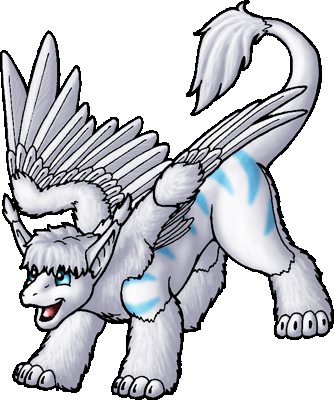from Samber http://www.geocities.com/mintlilly/ name: Noel-Ginebra gender: Male breed: Shroud Dragon parentage: Unknown abilities (racial): Flight, Concealment, Human Form, Vocal Speech, Telepathy, Suggestion, Fiery Breath (gaseous). abilities (specific): Summon Ice Starm, Create Ice, Shape Ice, Elfshape (female) notes: Shroud Dragons are created when human mages are killed in particularly nasty ways, such as poisoning or suicide. The mage, rather than dying, becomes a dragon. Some are good, some are evil, and some are in between. They do not retain memories of their human lives, but may take on the form that they had in their former lives at will. Dragon size varies by mage strength.