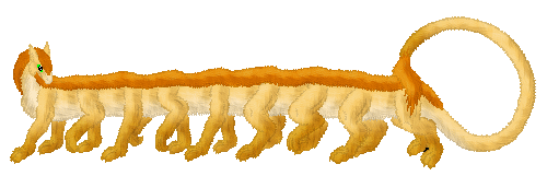 Decatie approached, and noticed that the creature had almost armor looking bits, claws, horns (one broken) and was a bit more draconic than horse-like. Its wings were 'feathered', though she wasn't positive if you looked closely they'd really be feathers like a bird has. It was about the size of a horse, small for a dragon even here at the Den (she'd seen a few around this size, but this one was a little skinnier, gaunt perhaps, and four-legged where a lot of the locals were bipedal). He lowered his head, by now Decatie was certain of its gender for no real good reason. She carefully reached out and touched him. He was warm, she'd almost expected this half-spectral creature to be chill to the touch like a ghost or something. His blue eyes glowed softly, his wings folded down carefully, and he hobbled a little closer. It was then she noticed that he only had three legs. One of them, the left fore, had apparently been severed. Recently. "We've got to get you to Baeris, she'll know how to fix this." Decatie announced. "Come on, I can't stand the thought of you being down here alone. What bit your leg off, anyway?" His eyes went narrow and he turned, looking over his shoulder and adopting a guarded stance. His tail curled defensively around his hind legs, and he huddled closer to her. "It's still here?!" Decatie said, suddenly dropping her voice to a hard whisper. "Then let's scramola!" They vacated the area, heading back to the brighter lit corridors that had people in them. A number of the folks there glanced in horror at this glowing creature, some vocally wondering where it had come from and shouldn't it be in the infirmary? The wound up in the dragon infirmary, where Baeris did her level best to patch the wounded creature up. "Dulath tells me he belongs to you, is this true?" Baeris asked, washing her hands off and making sure that the resting creature was comfortable. "I suppose he does, now," Decatie said, as her friends came along. "Elgar is his name," she added shortly. "You named him Elgar?" Asked Selina, "that's a weird name for a dragon." "He's.... he's my familiar," Decatie announced. "I just get the feeling he wants to protect me as much as I did him. And look, he glows." She grinned, and spent the rest of her afternoon there with the recuperating Elgar. *** Word apparently got around that the girls were in search of Familiars, and a parade of small creatures kept being introduced to them by the Den's enthusiastic inhabitants. Flitters of all sorts, alis-gryphs (small sparrow-sized gryphlets to one that someone called a purebred ibissynian), water-born sea-flits, insects, conventional reptiles, toads, miniature horses, spare summoned imps, a house elf, and finally an angry looking black-haired man was paraded by the other girls. "I told you I wasn't theirs," said the man as he walked off - led by someone who looked just like him only less angry. The Healing Den was like that, weirdly reminding the girls of home. But there came a time when one particular person traveling back from a world, Mirus by name, had gotten their hands on a couple young furry creatures. They were like nothing the trio had ever seen. Wanda latched onto one of them almost instantly. It was mostly yellow, with a darker orange streak along both sides, fluffy nose fur, and a poofy tail. The thing was about three feet long, but it had the wobbly gait of a puppy. A puppy with eighteen legs! It was like a mammal-catarpillar! She sniffed a bit, opened her green eyes wider, made an adorable cheeping noise, and hurried her tromping walk toward Wanda. "Look at her! She's adorable! And she likes me!" She cried, giggling and raising her arms as this multilegged creature trundled around her body in search of something.