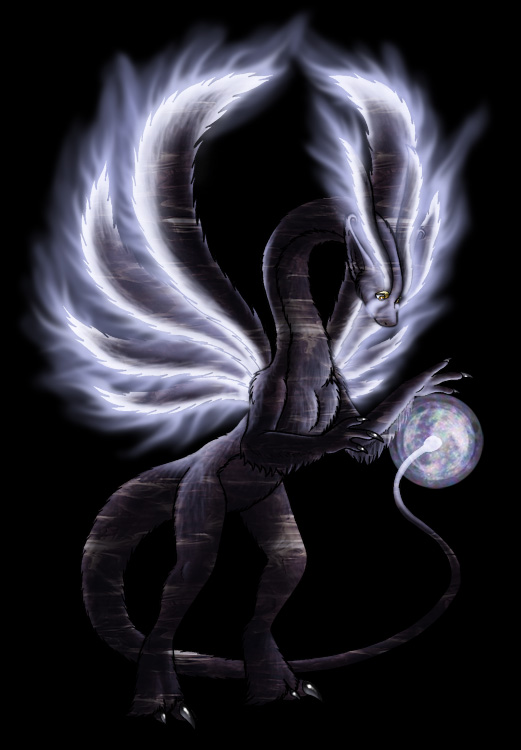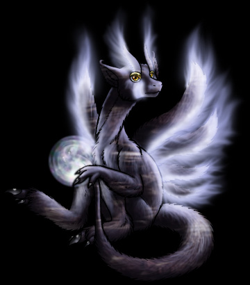 Name: Lunarwisp Bonded to: Photha el-Din Gender: Male Species: Nightmourner Mutt Hatchling Height: 1'8" at shoulder Adult Height: 8'4" at shoulder Color: Grey Amber Personality: Lunarwisp is the only one of his clutch who isn't dark or twisted in some way--against them, he's almost bland. You could call him a connoisseur of magic, hence his attraction to a teacher of the magic arts--and an art, indeed, is what Lunarwisp considers it to be. Delicacy and finesse is his modus operandi when he weaves magic from his tail, and anyone who throws magic around like a wrecking-ball will earn nothing but his scorn. Abilities: Bioluminescence. Illusion Magic. Narcotic Magic. Physical Magic. Telepathy. Teleportation. Verbal Speech. Hatchling Charm: Glass Adult Charm: Iron |