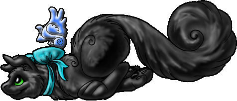 No sooner had she slunk up to the wizard, did she turn gracefully and grow bigger. Not big enough to ride, but certainly bigger than a housecat - or even a kneazle. Almost the size of a large guard dog, her fluffy fur rustled in what might have been magical wind, and her bright green eyes blinked sweetly up at Photha. "Mine," she said, voice as smooth as one could expect. She too had little fluttery wings - like Dublin (who had come along with Photha riding his shoulder almost unnoticed. The creature batted at the yellow rock-lizard, and they merrily bounded away floating on whatever magical whim they needed. No harm would come to Dublin, and certainly no one would dream of hurting the feline-like familiar. "So what's she called?" Iji asked, and Photha shrugged. "Not sure, Mina I think. That would be an acceptable name for her. Now.... where's she got off to..." Photha wandered away while the others continued conjuring their own presents. *** It didn't really come as a surprise that one day there was another little lizard-creature sitting beside Dublin, when Photha got back up from a long day teaching. It was a brightly colored blue and white one, this time, not quite as long as Dublin, but a bit lower to the ground and a little chubbier. A moment after he noticed the creature, it started making off with one of the little pewter unicorn statues that Photha had on his shelf! In fact, now that he looked around, a large number of very small items had been moved around from one shelf to another! Probably all due to the activities of this little thief! "Why you little swiper, you're not supposed to move things. You don't know where they've been," Photha warned, and Dublin made a tiny eeping noise from his shoulder to drive the point home too. "And you don't know where they might take you! Now, come over here, you haven't been to this shelf, and I'm sure you'll find it a little more comfortable." On it was a big enchanted dollhouse, it had actually belonged to one of the castle's inhabitants long long ago, but the magic in it still worked. Doors opened and shut, and let the little palm-length creature into beds or over the kitchen wares. It seemed to enjoy that - but even so, over the next few days, Photha did have to re-swipe several works of 'art' that Swipe had put into its new home...