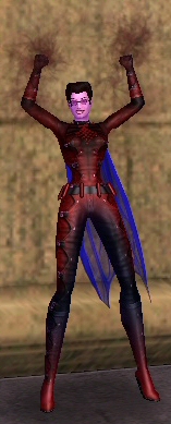 Since Rita is a multiverse character (and me to boot) with teleportation powers, she is often found near him resting up on the craggy peaks near the Zekiran city. Though 'powered' like many local Kin, Rita knows she's not welcome on Planet Twenty for long, as a human. Perhaps some day she and her 'partner' Akarist will settle here. (yeah. heh. Akarist the circle of thorns traitor... I have such a thing for scary bad guys...) Seppi and Rita can converse about the dangers of healing on the run, and whenever he's not present and accounted for on the mountain side, he's probably at Paragon - fighting crime.