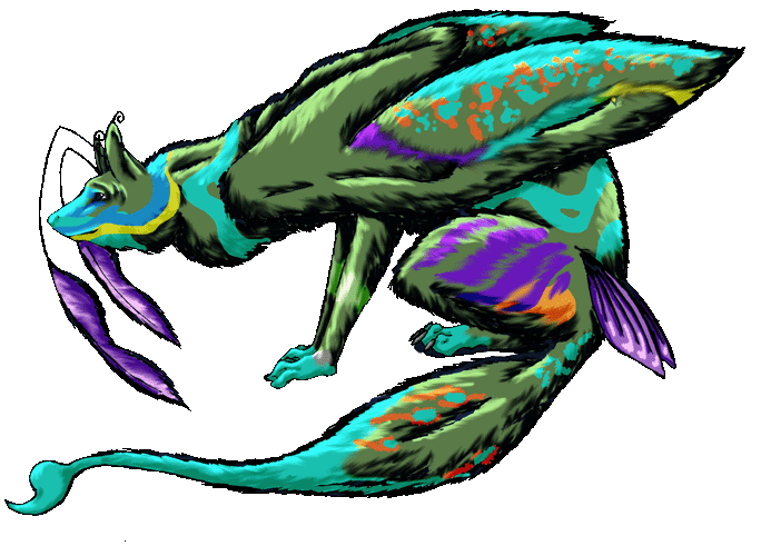 From Dasmalenra, Iolabfej (eeohLABfay) is truly enjoying himself. His freshman year he intends to learn as much as possible, so he can 'slack off' in his next... Fitted with flight aiding levitation disks in his wings, since his wing sails are too weak to support him, he's thinking about becoming a superhero or something - after all, there are a bunch of em flying around. Why not him too? *** Io strutted around campus looking for something to do. He'd participated in a flight recently, his first. He hadn't won but that was all right, the competition was sweet and he really needed more practice before doing that again. It was summer vacation, and now he needed to occupy three months of glorious days and nights. He swept over the city and was joined by other dragons, it was becoming a popular spectator sport apparently, to watch from below or rooftops as parades of dragons (both with and without riders) came through the city. Downtown had become a vortex of flighted creatures, all dodging between the buildings and trying to scare the folks inside. Io had thought about taking summer courses, but the sun and the beach and everything were all so fun! Eventually the school year would start up again and he would choose classes to challenge himself. He didn't care whether he was getting a C or an A, as long as he didn't fail something he wanted to learn. It had only been a week since school let out, and there was a beach party. A lot of the kids, aliens, dragons and even professors from Carramba were at it, there were bonfires every weekend during summer. Dragons lounged around on the still-warm rocks above the beach, and since the day was done the parking lots were more empty and some of them soaked in the hot asphalt there too. Iolabfej remained dry and warm outside the surf, he wasn't sure whether the levipads in his wings would work properly in water. There were a few people tossing around a glow in the dark frizbee (that was fun), and some using their powers to create sand sculptures under the floodlights near the grass. It was all in all a really nice night. He fell asleep under the stars, near the pier, surrounded by a number of other dragons and their friends. Yet, Io had a strange dream that night. It called to him, he wasn't quite done with his off-world travels. A place called to him, so when he woke he was left with such a strong impression of the location he shook off the sand from his hide and mane, and teleported straight away. "Maybe I should have eaten first" Iolabfej complained, as he picked around looking for a place to stand. The location, Ihlathi, seemed pretty busy. In his dream it was more quiet, intimate. Maybe that was just his impression though. After all there were plenty of dragons around here, they always made things look crowded. There were bunches of colorful, fancy floofy dragonets though - they attracted his attention pretty quickly. Apparently they were there to find bonds or to get a new home. Their patterns were adorable, and Io wondered if maybe... Maybe one might want to come to Carramba with him? "Excuse me," he said to one passing furry-dragonet, "want to come to school with me?" On thinking... maybe that wasn't the ideal pickup line, but hey - it was true and he was serious! |
