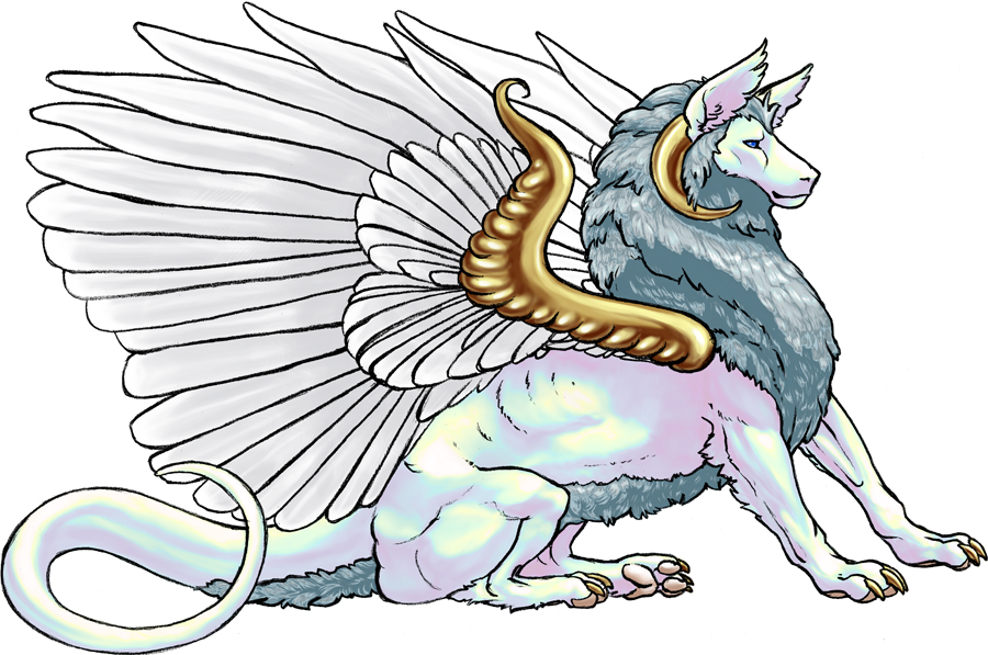 Name: Arothphael Imabrosia Bonded to: (sponsored by) Gabriel Gender: Female Species: Supernal Hatchling Height: (?) Adult Height: 16' shoulder, Medium-Large Color: Silver-Prism Unique Ability: Heavenly Choir - Arothphael can lead a host of ethereal voices through a song-like ritual that can strengthen the resolve of friends and strike paralyzing fear into enemies. Personality: Stubborn, Decisive, Strong Abilities: Breath Weapon (Lightning), Fire Immunity, Heal Others, Shapeshifting (Human, Lion), Size-Shifting, Teleportation, Verbal Speech Parents: Dimasasehiel Imabrosia and Raminiel Nathanurin