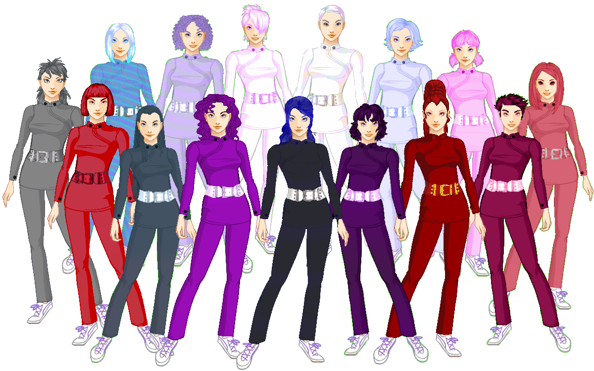 There's no doubt that when GLaDOS started her bizarre manipulation of Aperture Science, she had in mind an overwhelming plan of action to save the world. Shee-yeah-right. What she did have, outside of a bunch of robot assembly lines and deserted facilities at her disposal, was a series of clone samples - Bring Your Daughter To Work Day was very, very handy for this collection. She knew that with all the samples from the "testing" done on the Daughters, there was ample variety of genetic material to 'save' the Human race. Of course that was her goal. Not to just find out the limits of Human physiology or psychology, pshaw, that was for amateurs. She already had access to the prior research done by Aperture's dashing founder Cave Johnson. So she wanted to make people with these samples, plentiful ones. The issues started when she tried to figure out who to pair these clone samples with - what could she make? Hmmmm? Obviously they would need to have a smart sire, someone that could inspire awe... No, she immediately discounted trying to get some of that Freeman fellow's genetics, though it wouldn't be all that hard, since he was trying to reach the Borealis and... well, yes. That. The answer appeared - and disappeared - mysteriously. That would do nicely, GLaDOS liked mystery. But she also liked to spice things up. So the likelyhood that the oddly inhuman male that visited on occasion would recognize his 'offspring' was minimal at best. He certainly wasn't human, looking over the genetics she'd acquired and comparing them to the 'daughters'. But that was fine. She'd spliced worse. Well, no. That, like the cake, was a lie. She sculpted her little projects while monitoring the things going on outside. It was a mess. Chell and her own clones had done their job pretty well, training up to be released into the wild, but there were other concerns outside. Not just the Combine, of course, but creatures as varied as they came on earth - but not from earth. Those little ham-shaped Houndeyes, barking and yipping, they were adorable. But they left messes and screwed with the sonic sensors, so they couldn't be let inside. A shame, really, because they would make good pets or guardians. Antlions were simply too numerous and too ruinous - they weren't like bugs that did exist within the facility, they were far more like ravenous burrowing winged weasels. Vermin. It was a good thing that the Vortigaunts were there to keep them in check. And those creatures... Oh how the Humans underappreciated and underestimated them. These girls would have to be telepathic - because that was a very, very trendy thing to be outside - it would give them an edge. They would inherit many of their sire's odd abilities, though some more than others, and certainly they would learn to use them differently. But there were only so many things that GLaDOS could teach them herself. And, she'd been told repeatedly, her methods often left a little to be desired. So be it, GLaDOS would rely upon one of her errant daughters - her own 'flesh', ARRISA (the Alternate Resource Research Integrated Sentient Android) - to find the right place to instruct these new clone girls. Since leaving Aperture, ARRISA had found herself in a new world, filled with things far more interesting, and no less deadly, than the Combine. She'd become some kind of hero in a city that was ripe with strife and combat, where her powers and form hardly raised an eyebrow. But it would not be into Paragon City that these girls were led. Since they were young, 'teens' in appearance at most, though they'd only been 'alive' less than two years, they would go to Carramba High School. It was closer to Black Mesa and near one of the Aperture labs in that world anyway. It somehow never really occurred to GLaDOS to team up with her otherworldly counterpart. They'd never be able to get along. She hardly got along with herself on occasion. Mixed and matched, the girls would split up and learn all they could. They would develop their skills, and eventually be summoned back to their own world to fight the Combine. In the mean time, they might encounter some even stranger creatures... After all, Carramba High has a thriving Dragon Studies curriculum. And wouldn't the Combine be surprised by that? *** Indigo and Opal could be immediately recognized as the leaders of the girls. Indigo in a more physical way, inspiring and actually going out to lead, while Opal used her considerable communications talent to organize and keep track of everyone. Ruby, stark and serious but manipulative and cunning, broadly learned much about the culture they found themselves in, and was adept at extracting information from almost any person in almost any situation. Crimson took a far more personal approach to infiltration, socially adept and willing to use her good looks to her advantage. So opposite her in both appearance and attitude was their urban explorer Sapphire, able to look around herself and know exactly where to go - but almost lost in social situations. Purple and Violet were the complimentary pair of tacticians: Violet the offensive combat expert, and Purple the defensive; both adept with weapons and armor. Orchid and Lavender also similarly were two sides of a coin, this time a medical one. Orchid knew herbs and poisons, diagnosis and health issues, while Lavender concentrated on surgical skills and anatomy. Between the two of them, health was never an issue. Vehicles and weapons were covered by Cobalt and Carmine respectively. Both of them were absolute marvels when it came to their field, able to put together, take apart, and generally use almost anything they got their hands on. As a companion to them, Ash served as the group's mechanical engineer - building and breaking machinery. Amethyst likewise was the computer and personal techie, both of them astounding in their geekiness and both very suited to converse with highly technical people. Lastly were the odd pair out: Maroon and Lilac.
