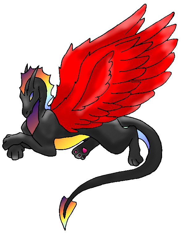 He whistled off a little tune, something he might have heard while in the clutches of the scientists in his early childhood. But then he heard another sound - his chirp was echoed. He perked up, looking to and fro until he saw a cute black dragon rushing toward him. He had feathered wings, a lovely feature on a dragon indeed. Creepie whistled and smiled - scaring some nearby people with his appearance, and hugged the dragon.