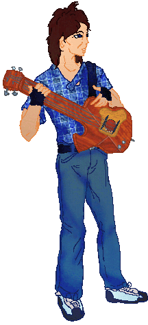 Solo 5 - Dave Halston Bass Guitar, Bass Viol Born and raised in Canada with the influence of parents who only cared whether Dave was doing something productive rather than destructive with his spare time. In a large house, with no siblings, Dave got the run of two large rooms - filled with art, music and interesting doodads from other countries. He chose the bass because, in his teenaged opinion, he was not 'good looking enough' to play a lead guitar in a band. By high school he was talented enough to be in a band, and irony aside, he was the best looking member... Rarely set upon by fans, but often interviewed for local papers and music scene radio shows, Dave became the spokesman for the band before they broke up. That was only half a year before the abduction... |