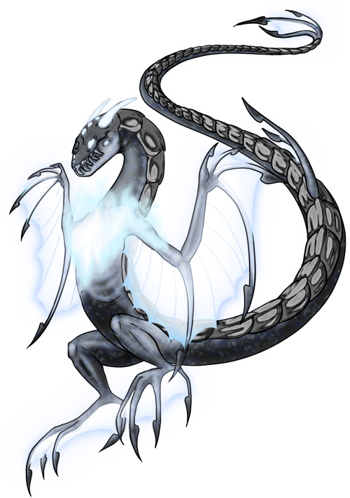 | Name: Kssht Chxalli Gender: Female Color: Blue-white/black, iron scales (A class) Parents: Celerity x Onkeith Chxalli Abilities: Psionics (Telepathy, Teleportation, Telekinesis), Shifting (Unlimited), Cosmic Entity, Fire Control, Light Affinity, Gravity Well, Light Control, Natural Immortality, Regeneration, Spirit Force, Stellar Song, Vocal Speech, Wyrmhole Travel Notes: Fire is extremely bright, and quite hot; think welding torch. |