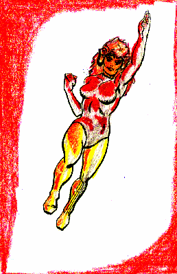 Scarlett Powers include flight, fire aura, protection from flame and heat, heat production in an area, and flame blasts. And big hair. |