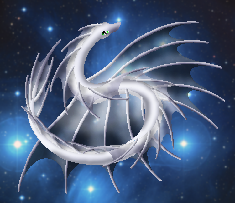 Shipsinger, Cynosura and Arasta traveled - in and outside of the great ship Avalon Gypsy. Cynosura kept mostly to herself, traveling the ship's corridors with interest but generally at 'night' when there would be few people to encounter. With her help, too, they journeyed farther and to stranger places than ever. Shipsinger was constantly tempted to leave off her money-making ventures, just to travel and see these sights without the bother of people. But then, people were also interested in her travels, scientists and explorers themselves. At one point, the Avalon Gypsy met up with an improbably improbable craft called the Caledrus, which was powered by something Shipsinger could only chuckle about. Their ship was full of dragons, interesting people, hitch hikers and astrophysicists and all. Maybe it was that the improbability field rubbed off on the Gypsy, or maybe she was just suitably inspired, but Shipsinger hired out her craft for a much bigger, bolder journey than ever. They traveled through the galaxy, but then also, past it, way past - the edges of black holes which littered the darkness of intergalactic space. There, to everyone's amazement, they found another dragon. She was young by their standards, perhaps a few hundred years old, yet her mind spoke of curiosity, there had never been other creatures so bold as to come near her black hole! She remained popping in and out to see whether the ship was still there, while the scientists aboard fell over each other to take measurements and get images. Arasta was held in the influence of the ship, kept from being crushed into nothingness by Cynosura's power. The pale colored starborn dragon ached to go closer, but didn't dare. "I have to say," Cynosura commented to Shipsinger, "that she is much better suited to Arasta's advances than I am, wouldn't you say?" Shipsinger stifled a laugh, "I would say so, they're almost the same size, and they're all snakey. I wonder if they could even breed together though..." Perhaps they'd find out - Celerity, as they called her, kept following the ship as they made their rounds, and eventually she helped them locate other smaller wormholes that were reasonably 'safe' for interstellar travel. |