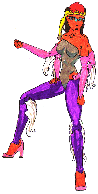GSY 4113-4136 Woodstock is back at the job she enjoys more than anything, studying uncontacted life forms in their native environments. Her camoflage skin coloration (all images showing her with strange skin or hair colors are true-color, no dyes or costumes were used) and her very clever use of clothing makes it easy for her to blend in with even the most suspicious natives