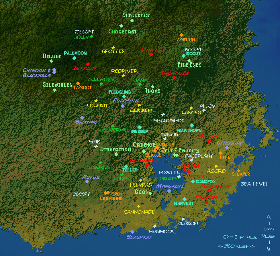 Situated at the south-east edge of the massive continent on the Otherforest. Equatorial but with great variation in climate and altitude, this locale is filled with wildlife and dangers, as well as beautiful scenery.