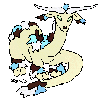 K' | Ferilon's muzzle has a pelican or cormorant's long gullety beak in typical colors with added fringe, can gulp up stuff like crazy but does only 1 point damage | |